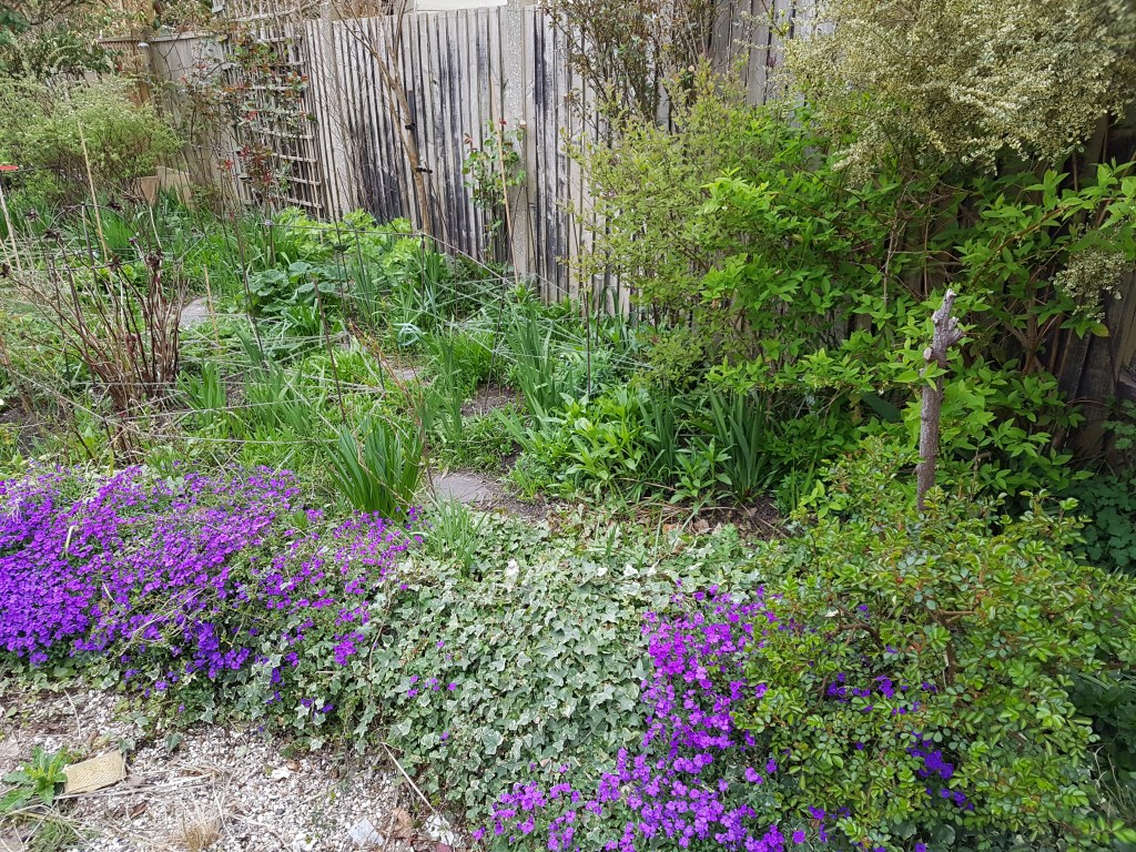 And then in with the new: as well as the catkins of hazel (Corylus avellana) and goat or pussy willow (Salix caprea), blossom will be on my Amelanchier lamarckii which usually looks incredible by the end of the month and the Aubrieta ‘Purple Cascade’ will be doing its stuff too. The bees appreciate the early bounty, and everything is starting to leaf up again.