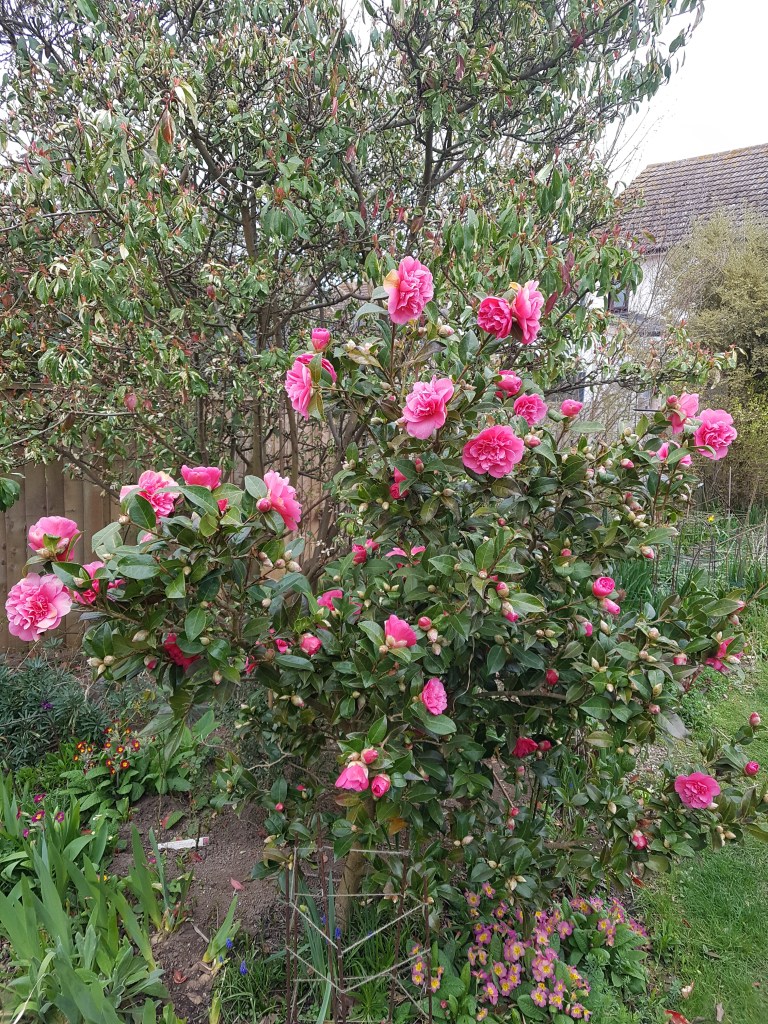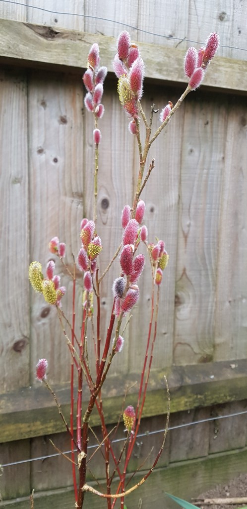 Around the garden, I see pink Camellia japonica, flowering currants (Ribes sanguineum) and even pink pussy willow (no I’m not sure why either), spring-flowering heathers (I grow pink and white Erica carnea), trailing Aubrieta in deepest pink and purple, Clematis montana, a range of hellebores, primroses, and a rainbow of bulbs. There’s blossoming Amelanchier lamarckii and apple trees in the borders, and more shrouding tree after tree on village walks with the dogs.