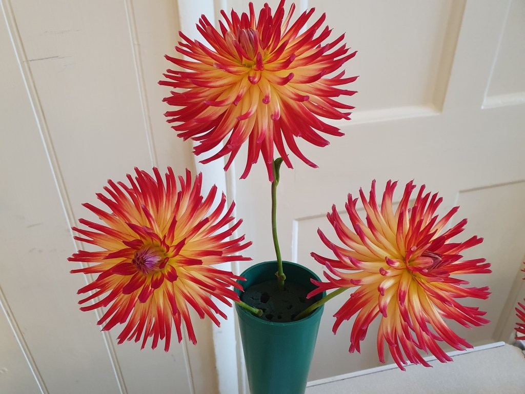 Autumn is our dahlia show (among other flowers of course) and among the five categories, people entered some incredible flowers. The single decorative class always attracts a great range of blooms, especially the giants like Café au Lait or Spartacus, but it can be a more challenging class as it’s easy to confuse other types of dahlia for decorative.