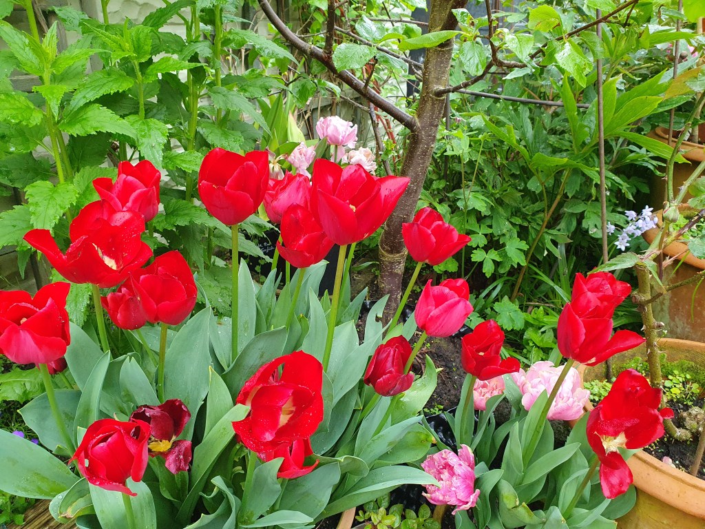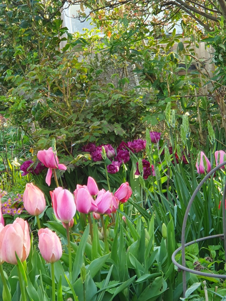 I like to wait until November so that I can put bulbs into the gaps left when I lift my dahlias. Then when the bulbs have finished around May, I’ll pop the dahlias tubers back in.