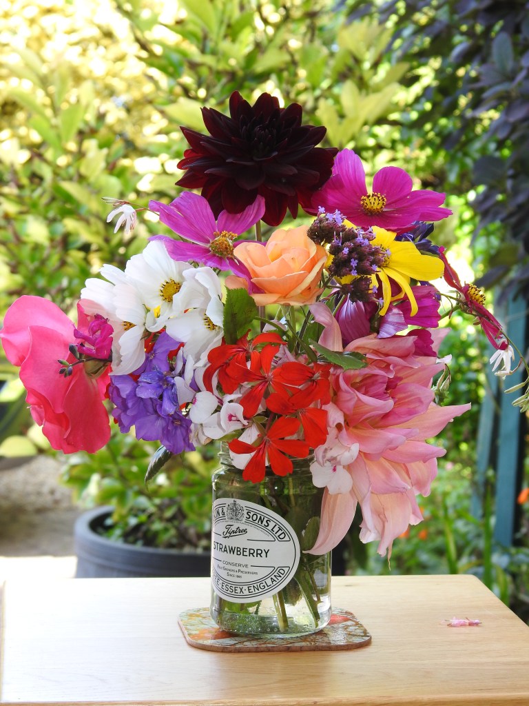 A jam jar of my favourite garden flowers
