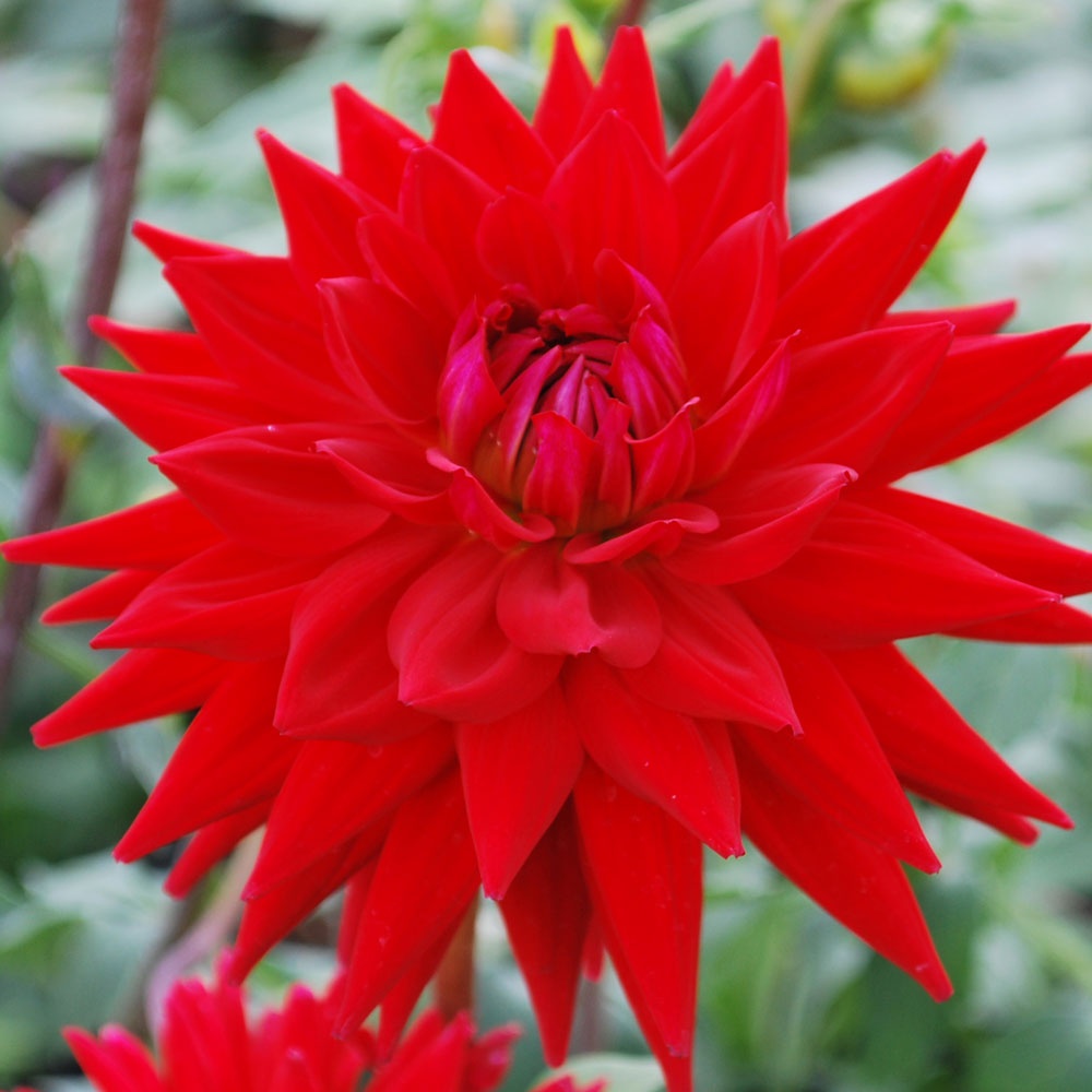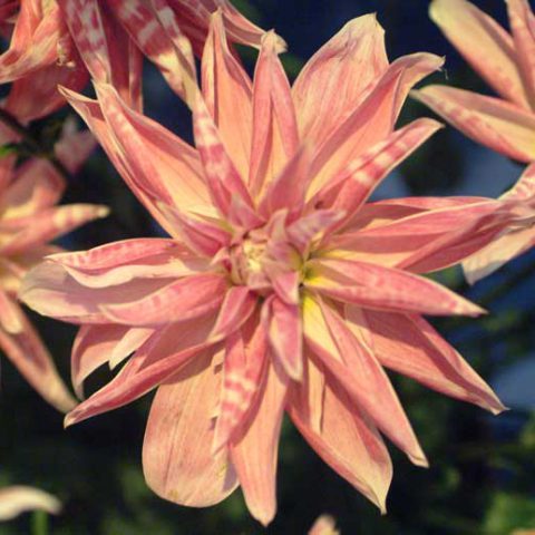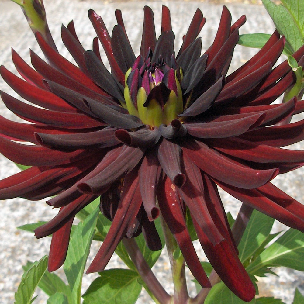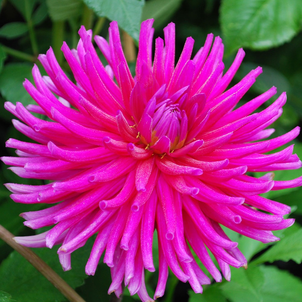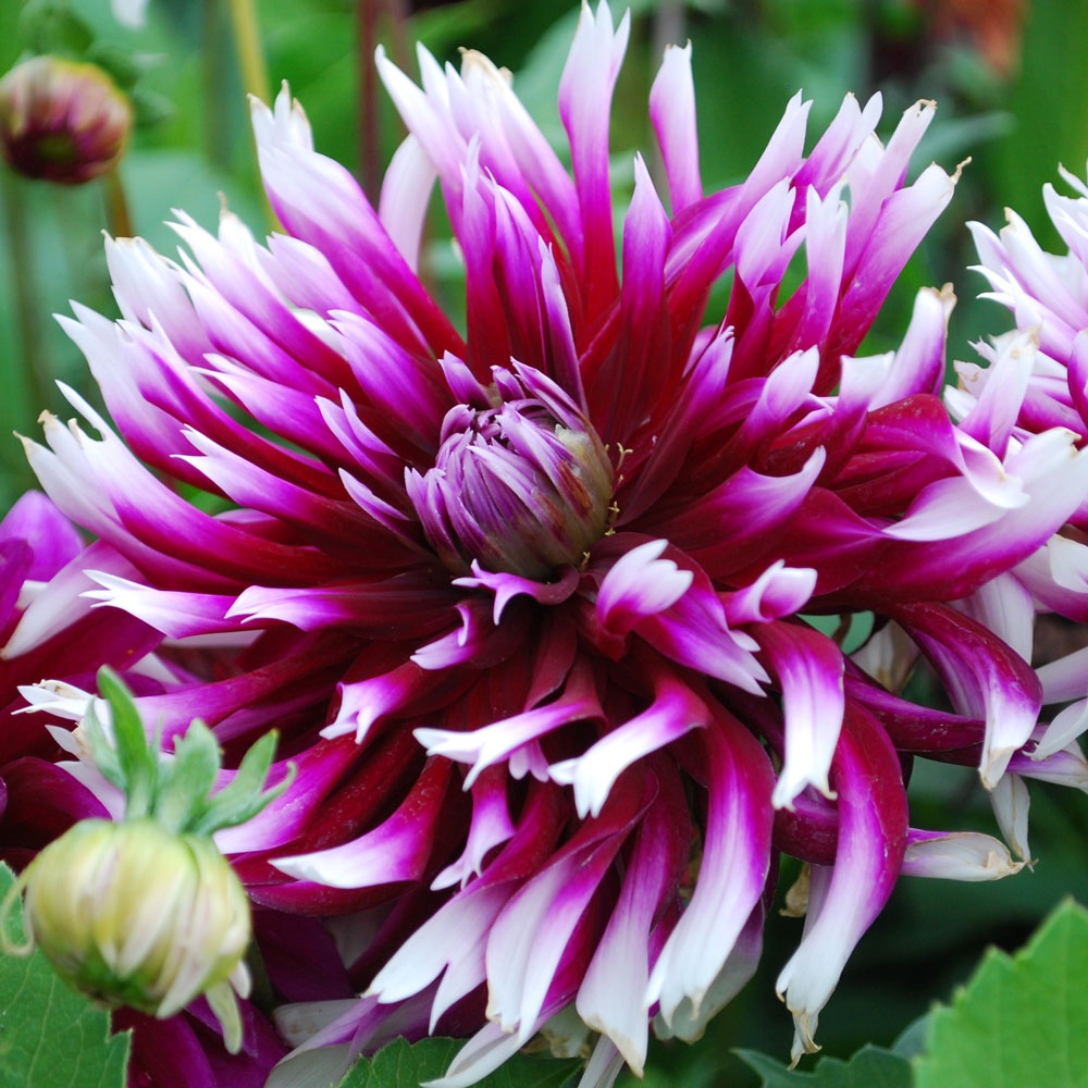Cactus dahlias have fully double blooms, with very narrow petals from the tip to the base, that curve outwards. They range in size from miniature to giant.