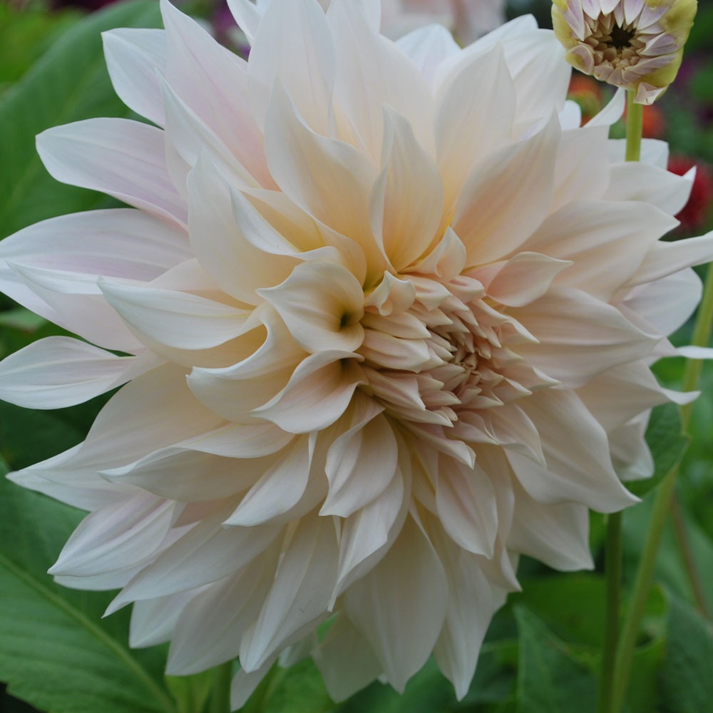 On the left: decorative dahlia, Cafe Au Lait