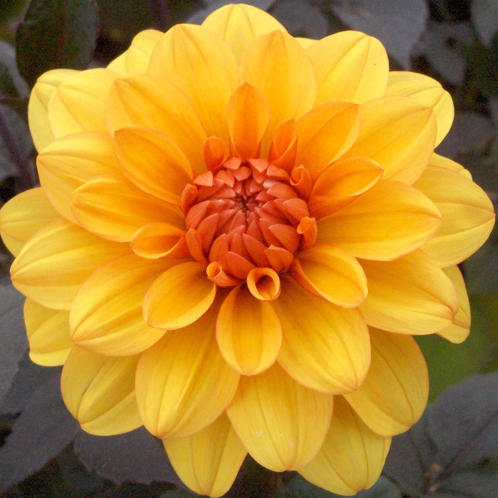 Double Orchid dahlias have fully double blooms showing no disc and have triangular centres. Ray florets are narrowly lance shaped and either involute or revolute.