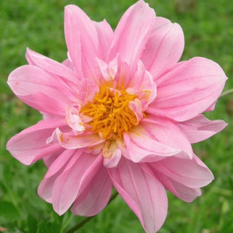 Paeony dahlias have multiple outer rings of ray florets surrounding a disc, ray florets are flat or slightly involute at base and are flat or are to some extent revolute.
