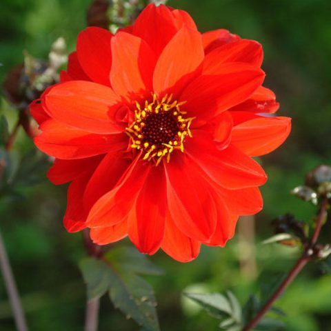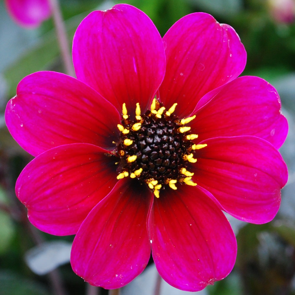 Single dahlias have a single ring of petals that circle around a central disc. The petals may be rounded or pointed and may overlap. This type of dahlia is attractive to pollinators.